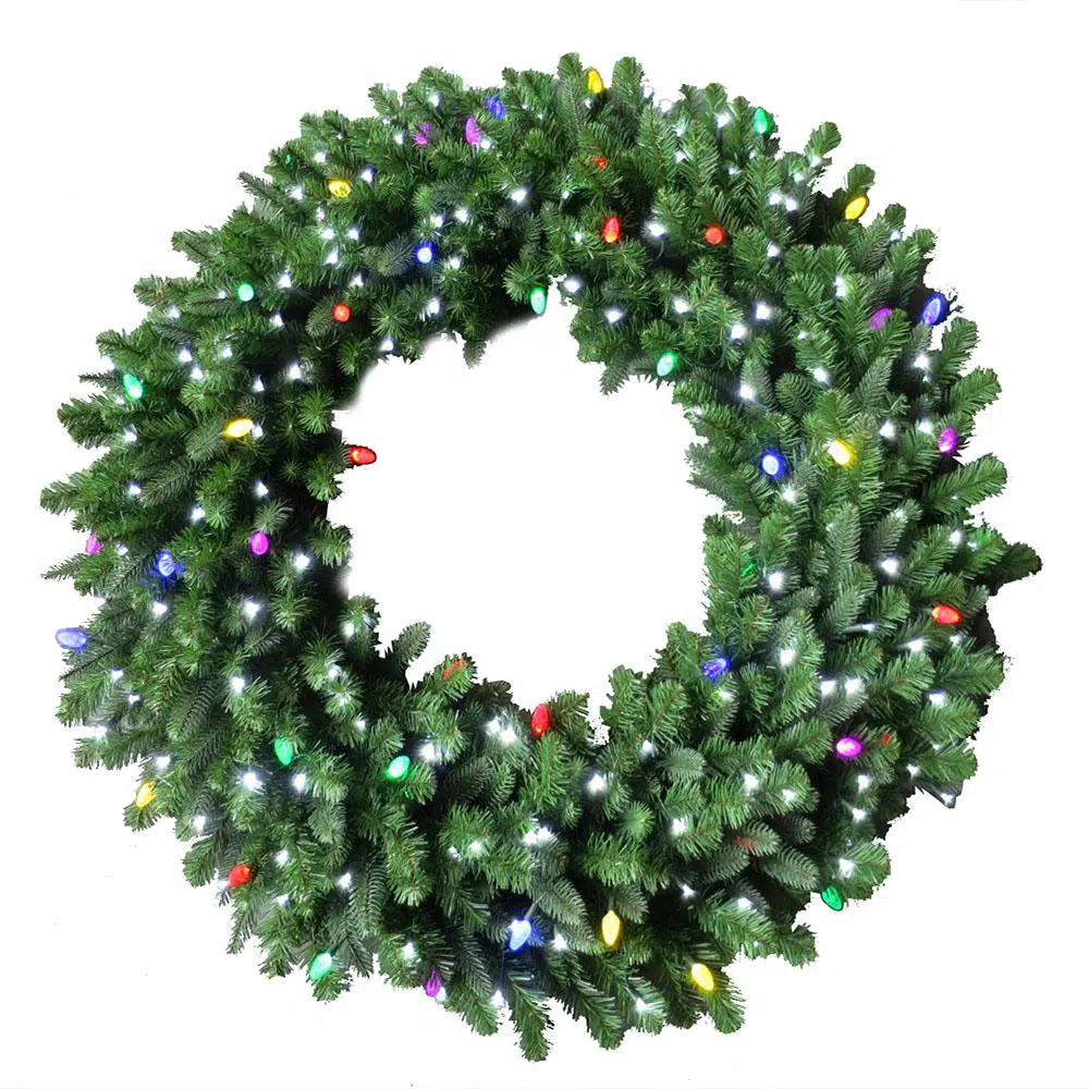 With a full and elegant shape, this 60 in. Royal Grand Spruce Artificial Wreath with Cool White/Multi is the perfect addition to your holiday décor. Each wreath features super bright micro-style LED in red, green and cool white. The realistic spruce tips add a unique holiday touch to your home.