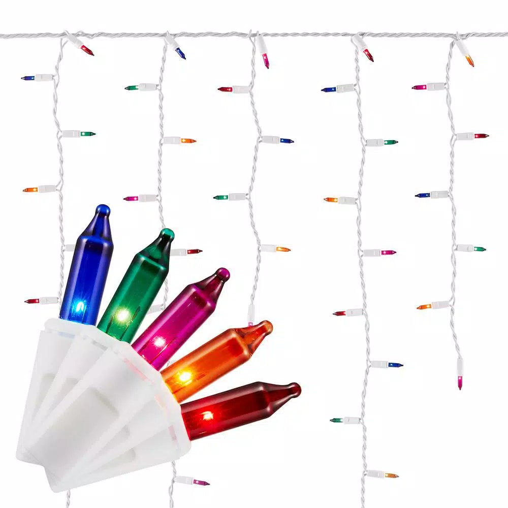 Use the holiday lights that many pros use with these vintage-style, Incandescent White Mini Icicle Lights. Rated for both indoor and outdoor use, they’re ideal for decorating trees, roof lines, patios and other structures. The bulbs are on the main wire and have 30 drops with drop spacing of 4 in. You get 2 sets of heavy-duty icicle lights for 600 lights total.
