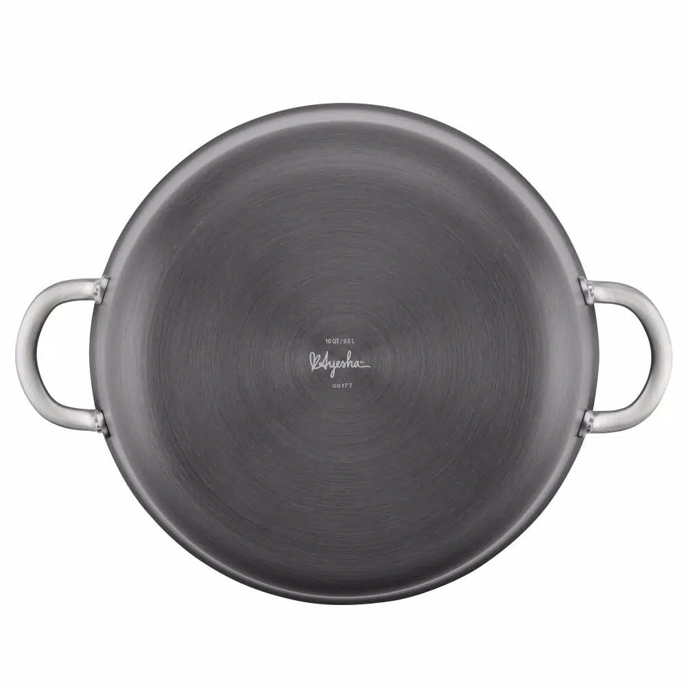 Aspire to your next level of kitchen cool and simplify the pursuit of your home chef passions with the Ayesha Home Collection 10-Quart Hard-Anodized Aluminum Nonstick One Pot Meal Stockpot. This 10-quart stockpot features chic design in a size that’s perfect for pulling together weeknight or game day meals. Constructed from extra-durable and even-heating hard-anodized aluminum, the stockpot features a sleek, flared silhouette and is heat safe to 500° F. A dual-riveted stainless steel handle and shatter resistant glass lid provide maximum creativity and versatility in the kitchen, and the premium-grade nonstick provides long-lasting, effortless food release and easy cleanup. Plus, this Ayesha Curry kitchenware helps support No Kid Hungry to provide up to 500,000 meals to children in need. Learn more at nokidhungry.org/onedollar. Life is short, so go big, get ready for the big game and let your one-pot recipes shine with the Ayesha Home Collection 10-Quart Hard-Anodized Aluminum Nonstick One Pot Meal Stockpot.