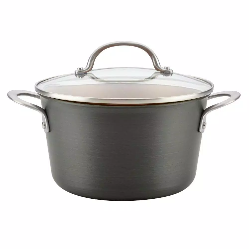 - EASY HEATING: Nonstick saucepot is crafted from durable hard-anodized aluminum for fast, uniform heating