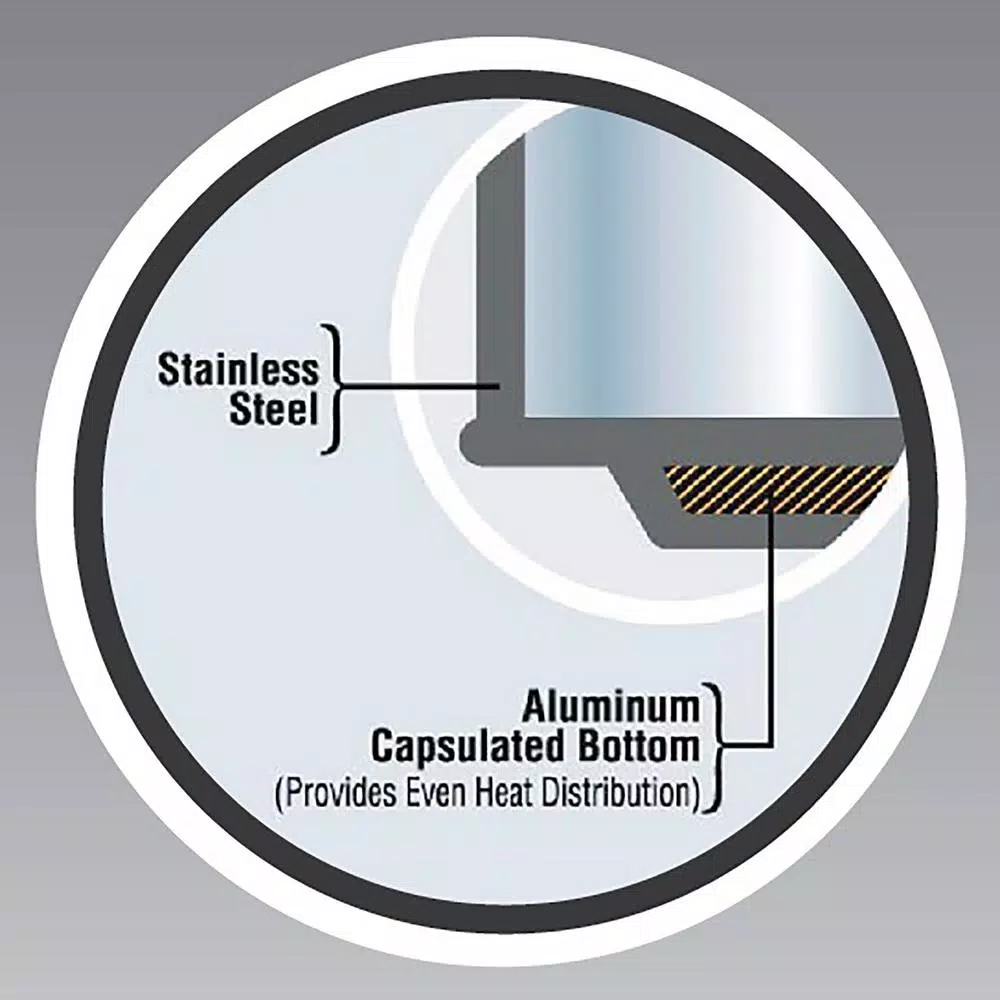 - Aluminum capsulated bottom to provide even heat distribution
