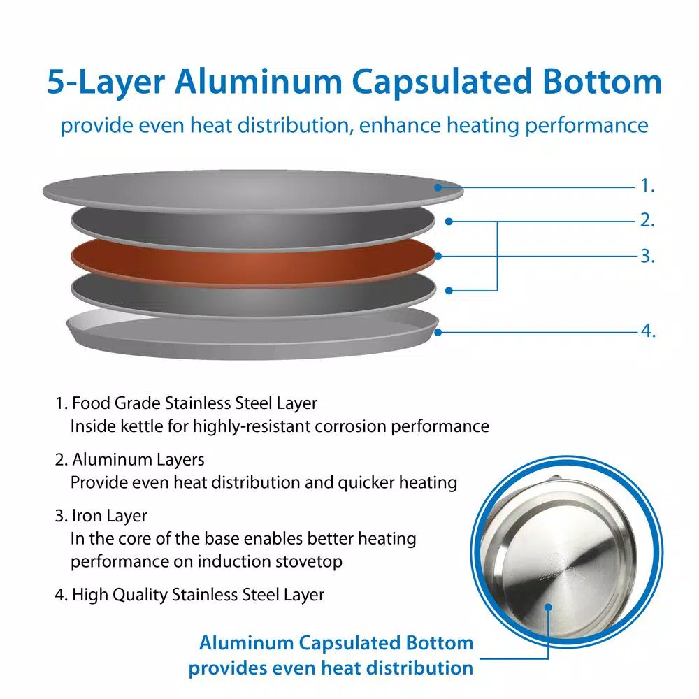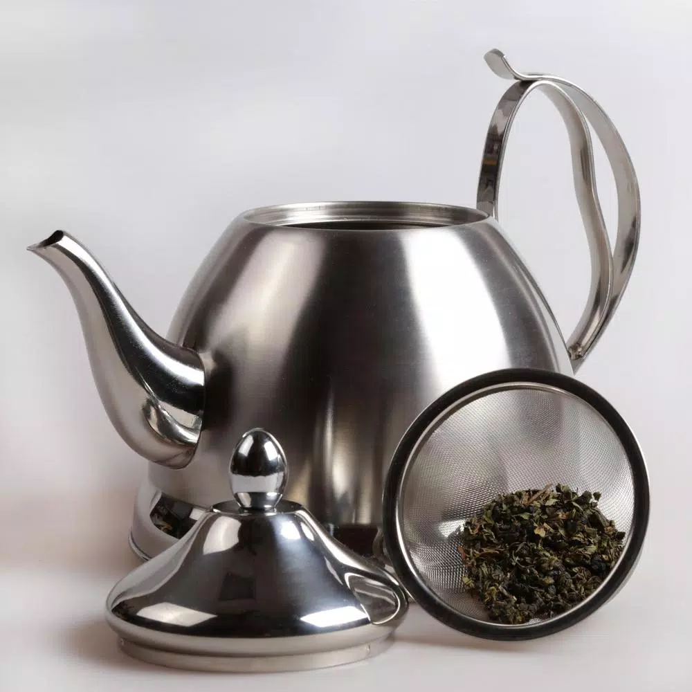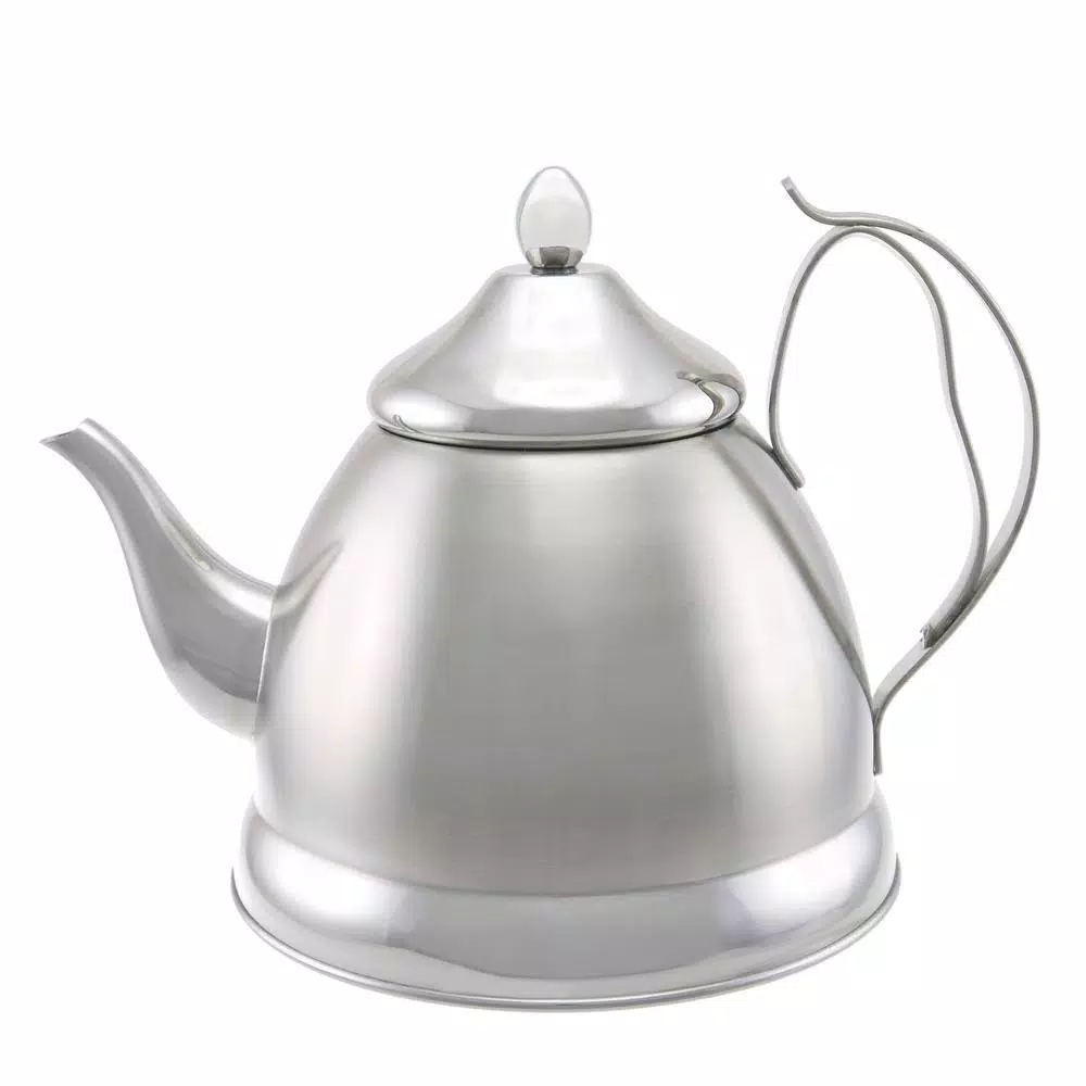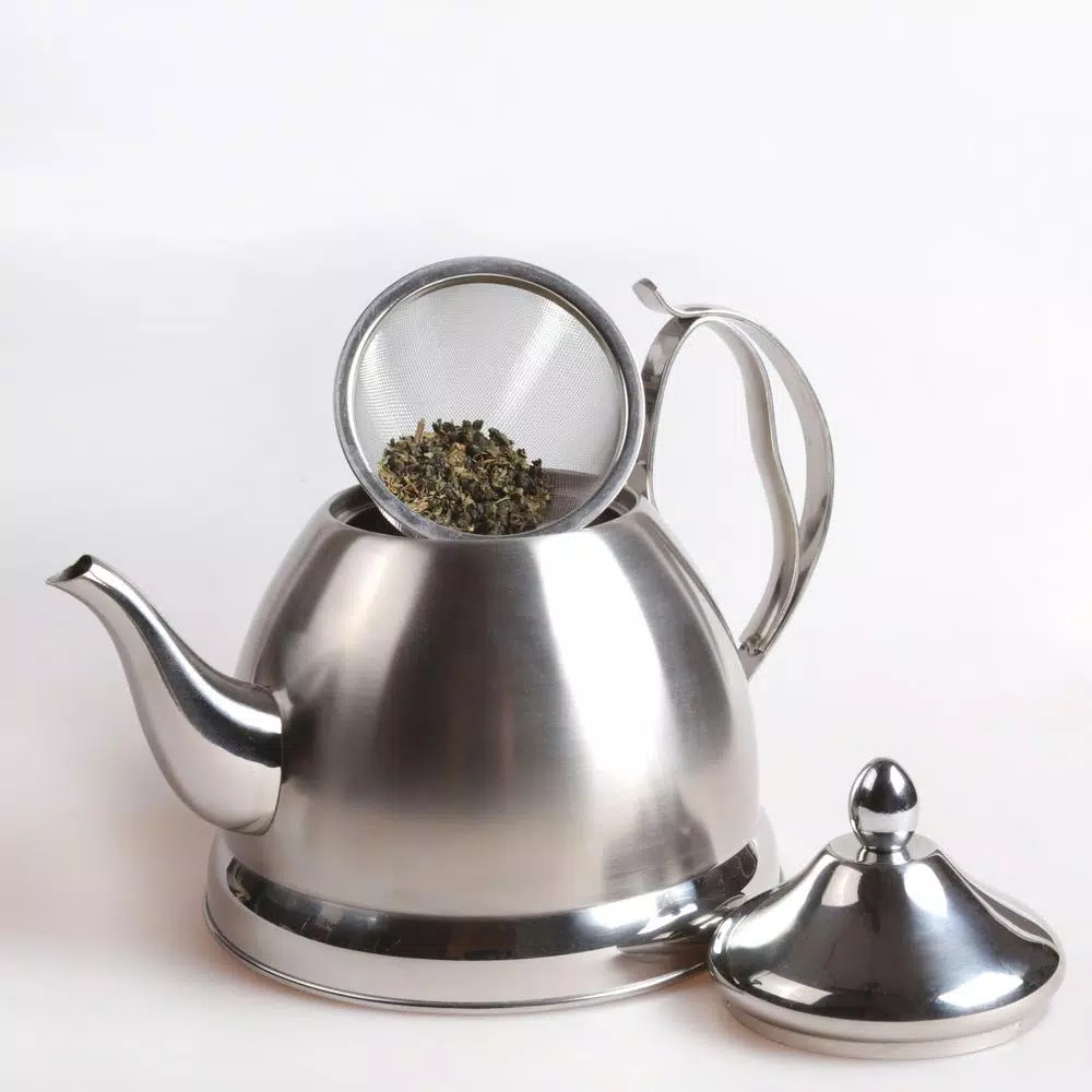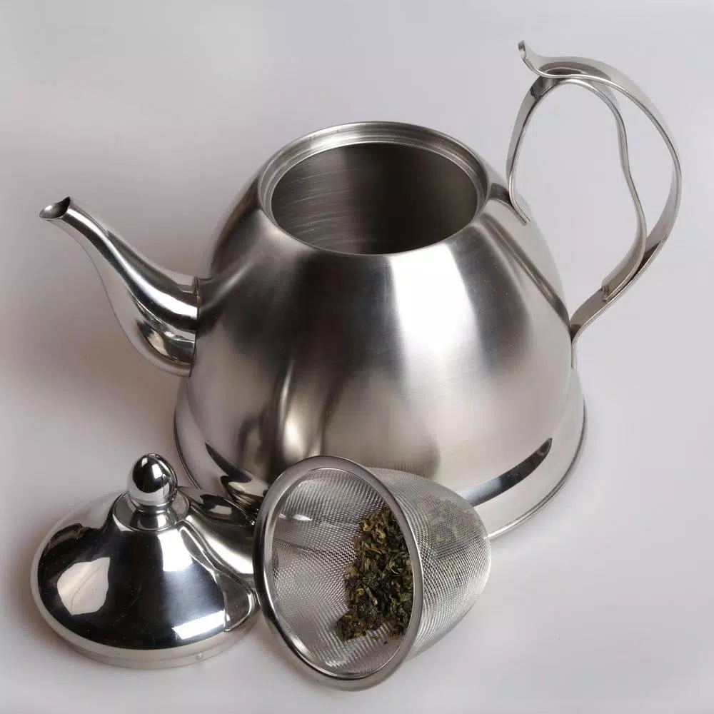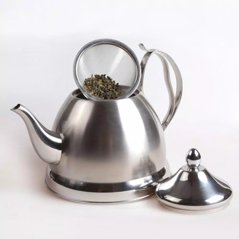 Nobili-Tea 2.0 Quart Stainless Steel Tea Kettle, Tea Infuser Kettle. Manufactured of finely brushed stainless steel with a unique elegant design that will look good in any style kitchen setting. It comes with a removable stainless steel tea infuser so that you can brew your favorite blend of fresh tea leaves. An aluminum capsulated bottom boosts the heat conductivity by evenly distributing it. Any stove top will welcome this classic design.