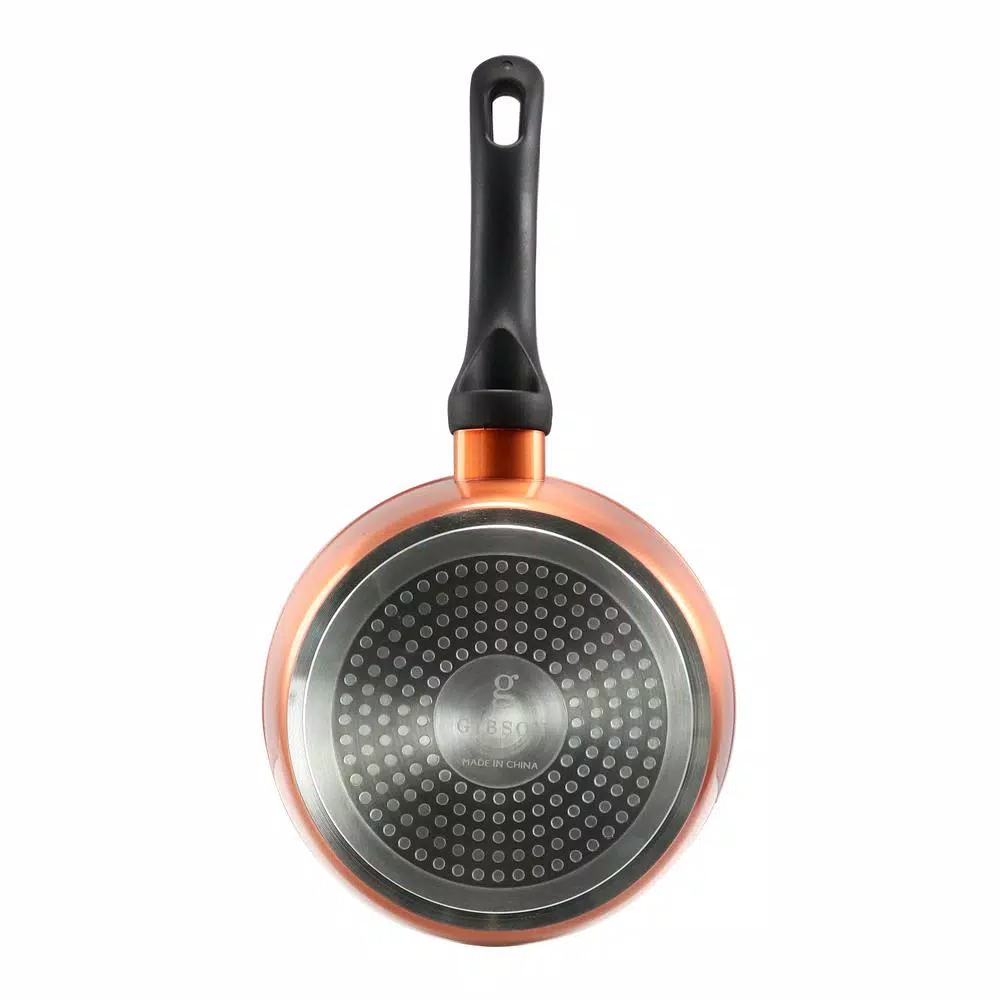 The Hummington 1.7qt Sauce Pan will be your favorite new addition to your kitchen cookware. This pan has a titanium infused coating which gives it incredible durability. The lid is made of tempered glass and includes a vent so that you can have better control over the cooking process. Compliment any kitchen with the glossy copper sheen of this sauce pan. The bakelite handle and knob make it safe to handle and serve your guests right from the pan! To keep your pan shiny and spotless we recommend you only wash by hand only. Use a mixture of water with lemon juice or vinegar and scrub with a soft sponge or non-abrasive plastic mesh. The mixture should be used to clean the interior and exterior of your cookware each time after you have finished using it.