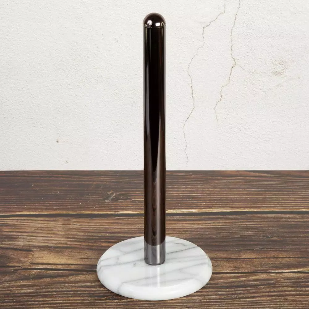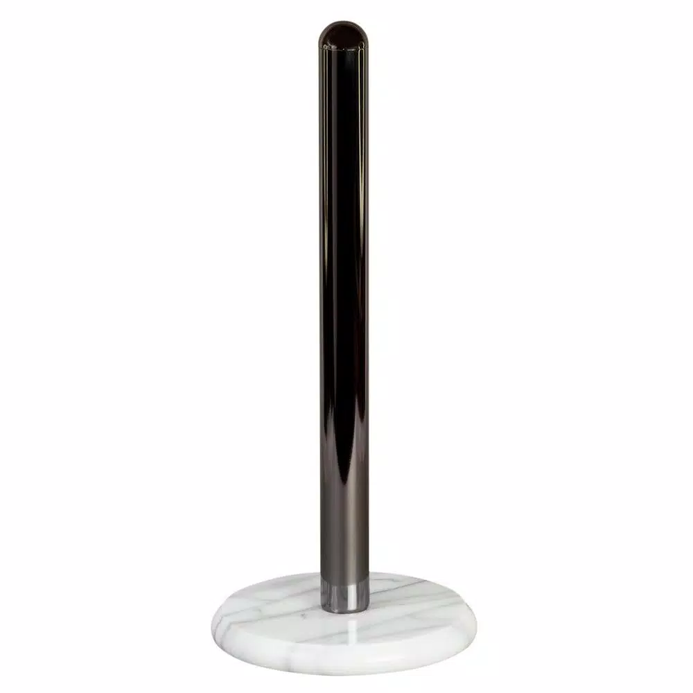 - Heavy duty metal pole with gunmetal plated finish, a great accessory to have handy, it holds standard size paper rolls and boasts style design that will seamlessly blend in with any modern home decor