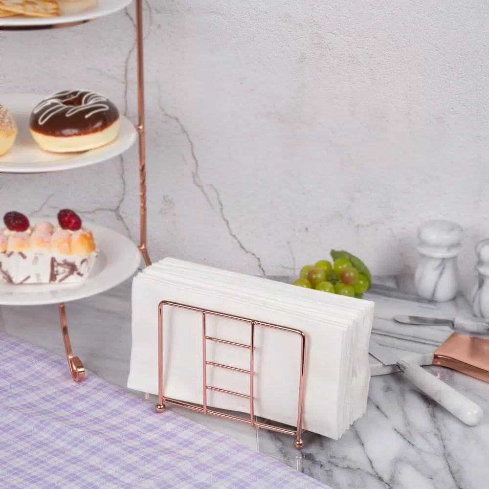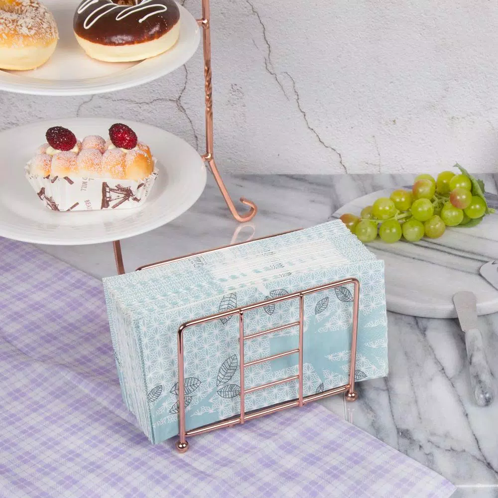 Iron wire with copper finished and elegant design. Featuring based legs for sturdy and prevent scratch and slippery on table top surface. Perfect for display and serve your napkins for fine dinning or kitchen table decoration.