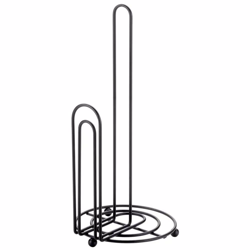 Keep paper towels close at hand, while adding modern elegance to your kitchen countertop with this free-standing minimalist styled paper towel holder. Constructed of durable steel to keep it steadily in place, yet light enough to easily move around should you need to clean the counter. No need to unscrew annoying finials to replace a roll, simply slide it on the metal loop to fill or slide it off to remove. Weave the paper towel along the double metal loop in the front of the paper towel holder. Then pull and tear the amount of paper towels you need. The base is equipped with non-skid feet to secure it in place, so you can be assured that the paper towel holder does unravel in the process. (Paper Towel roll not included).