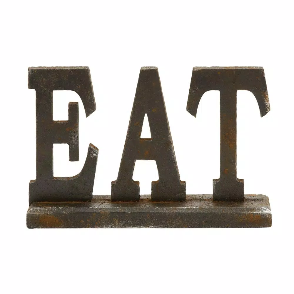 - Features wooden uppercase letter cutouts spelling the word “EAT”