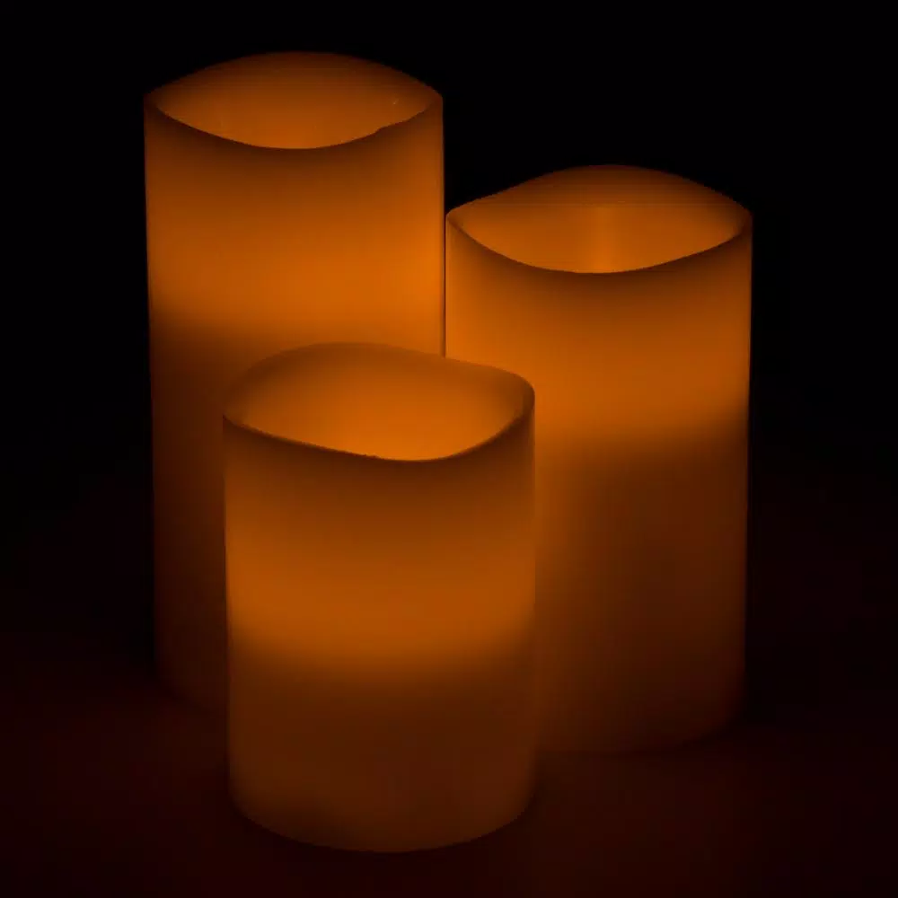 Designed to look like real candles, 3-Piece LED Flameless Votive Candle Set with Remote by Lavish Home is a great addition to any home. Get the classic, comforting look of a soft glowing candle without any drips, smoke, flame or safety hazards. Never worry about blowing out the candles before bed, simply use the remote to set the timer and forget about them. Featuring two brightness settings. Create the perfect ambiance for your home, wedding, dinner parties and more. Enjoy the subtle scent of vanilla while relaxing by our candles.