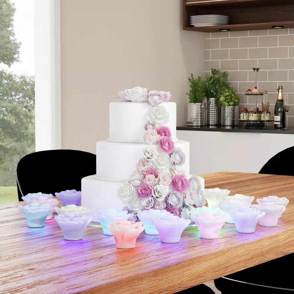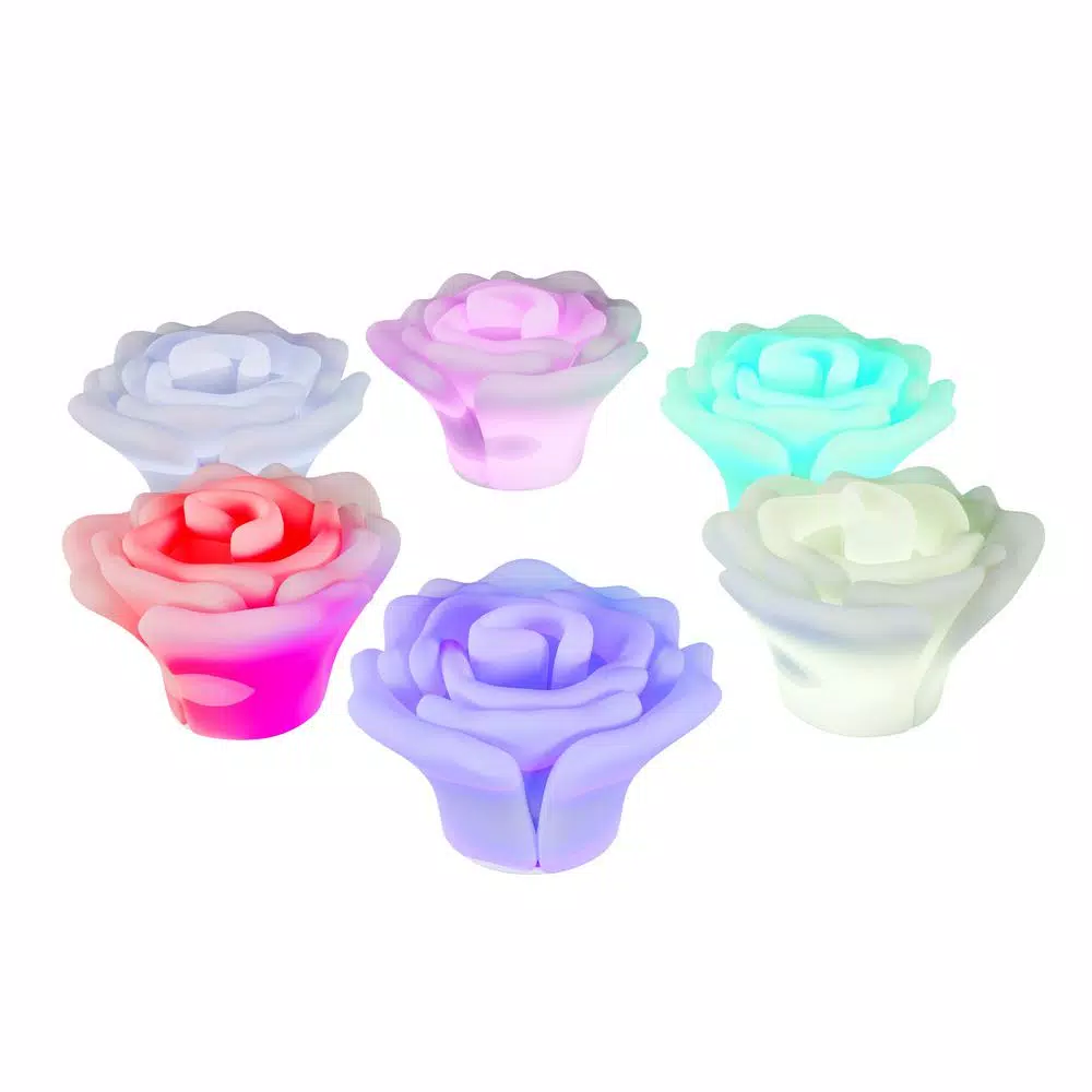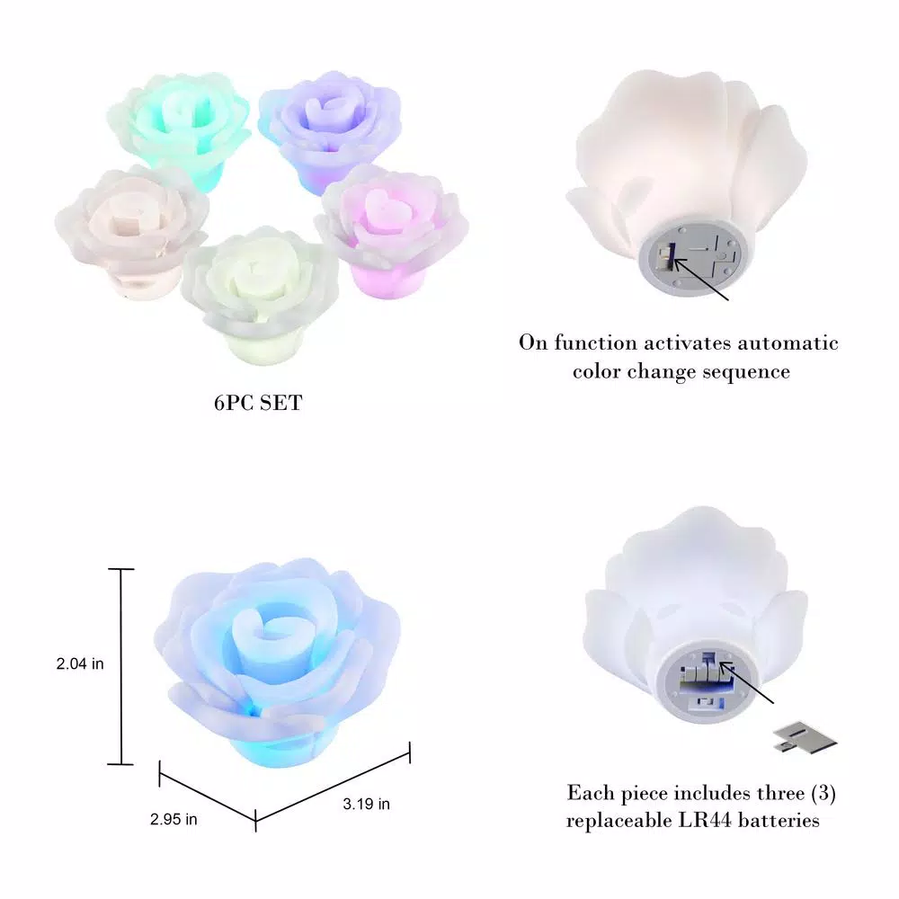 Bring in nature’s beauty into your home with the 6-Piece Rose-shaped Flameless LED Light Set by Lavish Home. These beautiful rose-shaped lights with color changing LED showcase a decorative glow and ambiance. The lights change in automatic sequence of 8 beautiful colors: Purple, green, blue, pink, light purple, light blue, red, and yellow. The long-lasting lights are energy-efficient and have a lifespan of up to 50,000 hours. The charming lights are safe to use, especially for families with children and pets. They are flameless and battery operated, so they are not a fire or electrocution hazard; making them an ideal choice for a child’s nightlight.