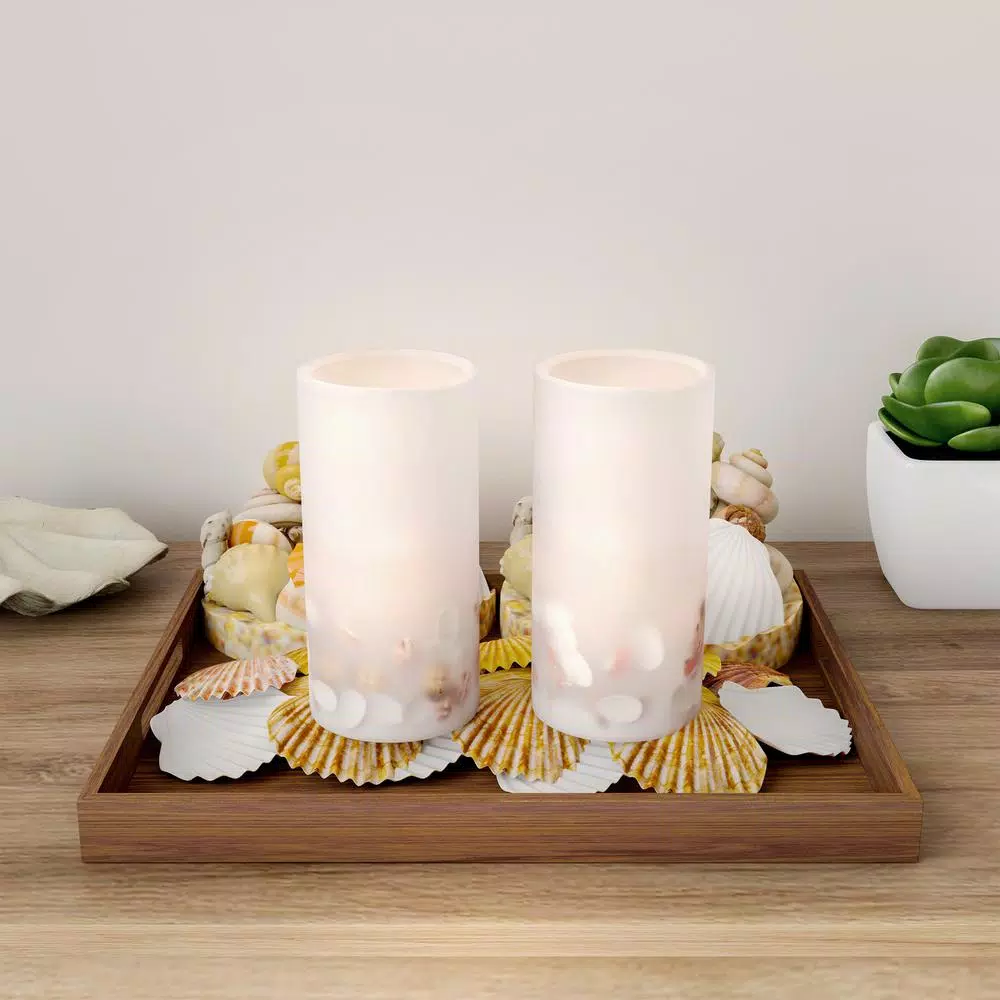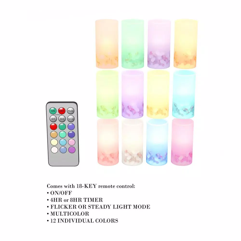 Add a uniquely beautiful, nautical touch to your home decor with the Seashell LED Flameless Candle Set (Set of 2) by Lavish Home. The coastal inspired, real wax candles are embedded with real shells to add a subtle ocean vibe to your home. The LED candles are battery operated and conveniently come with an 18-key remote, so you can easily control the power, timer, color, and the flickering or steady flame option with the push of a button. The candles have 12-color options, with a continuous setting or a multi-color changing sequence. This timeless candle set is sure to enhance any living room, bedroom, dining room or kitchen, and even makes a perfect gift for occasions like housewarmings, weddings, showers, birthdays, and more.