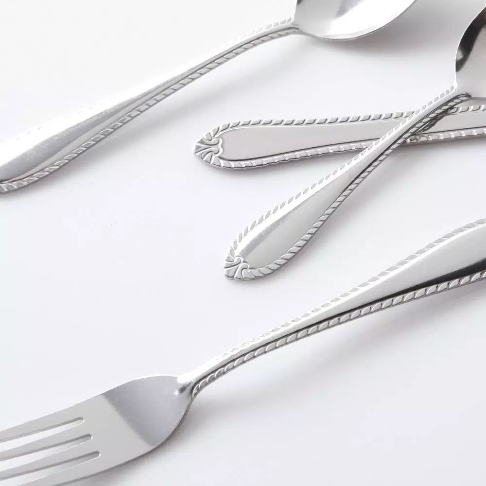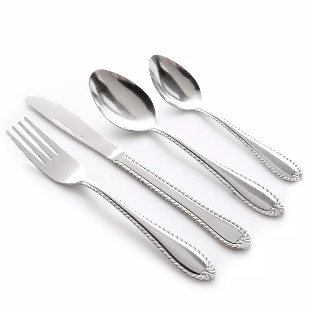 Take your next dining occasion to a new level of prestige with the New Wilmington 24-piece flatware set from Gibson Home. This stainless steel set has rounded handles with fringed edges that are as pleasing to the touch as they are to the eye. Bring this beautiful flatware set home today.