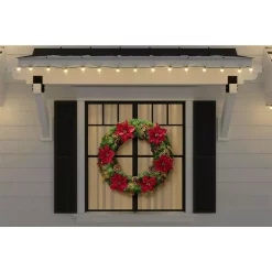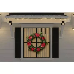 Christmas Greenery Home Accents Holiday 30 In. Berry Bliss Battery Operated Pre-Lit LED Artificial Christmas Wreath With Poinsettia