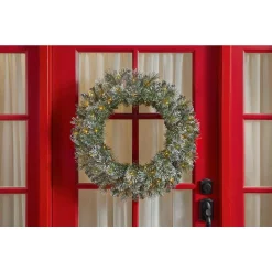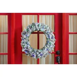 Christmas Greenery Home Accents Holiday 30 In. Starry Light Flocked Pine LED Prelit Wreath With 50-Lights And Timer