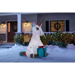 Outdoor Christmas Decorations Home Accents Holiday 5 Ft. Pre-Let LED Inflatable Unicorn