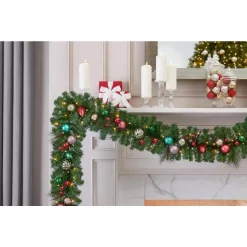 Christmas Greenery Home Accents Holiday 9 Ft. Christmas Bright Pre-lit LED Artificial Spruce Artificial Christmas Garland With Red, Green, Cool White Lights