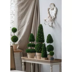 Artificial Topiaries A & B Home Potted Cone And Ball Faux Boxwood Green/Cream Large Topiary
