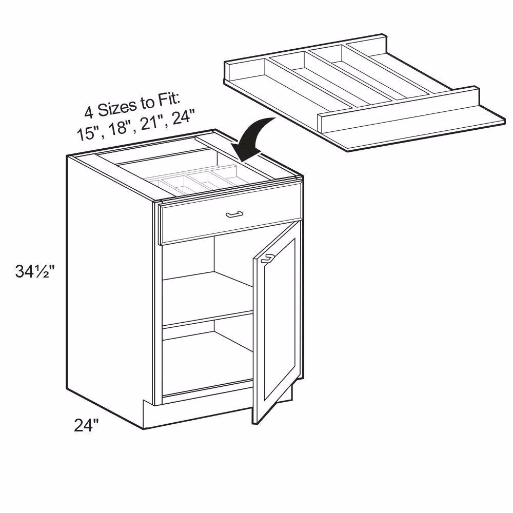 Home Decorators Collection cabinet inserts help organize your drawers, so everything is easily at hand. Solid hardwood divider tray has individual compartments to organize your utensils. Sized to fit 18 in. drawer. Bonus full width compartment suitable for longer utensils.
