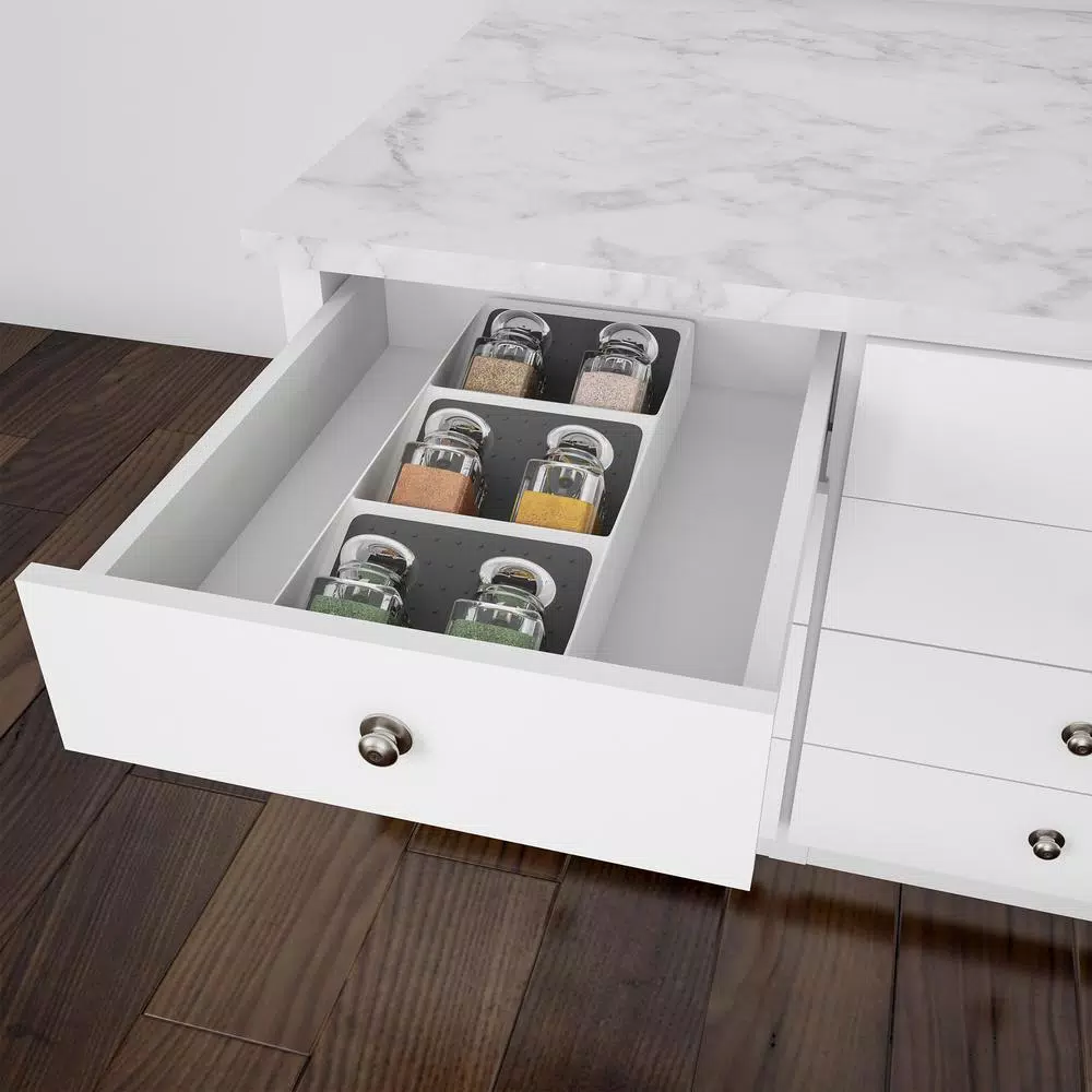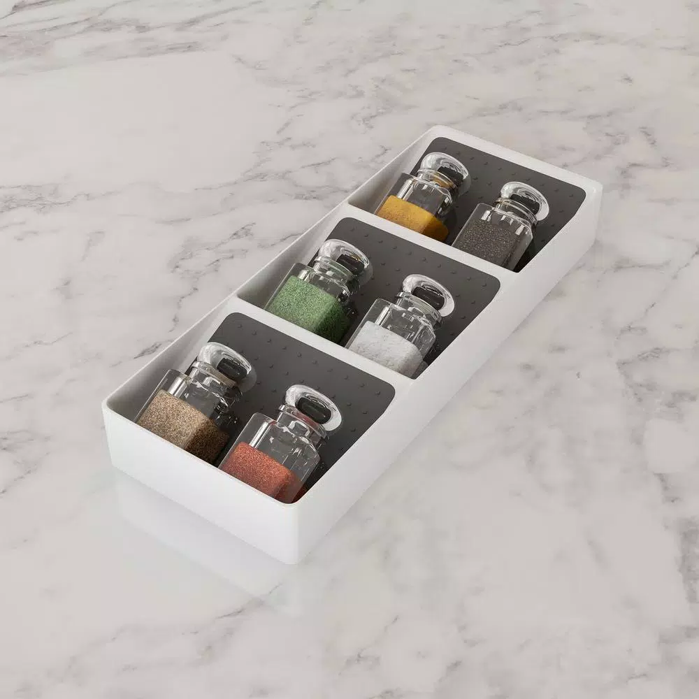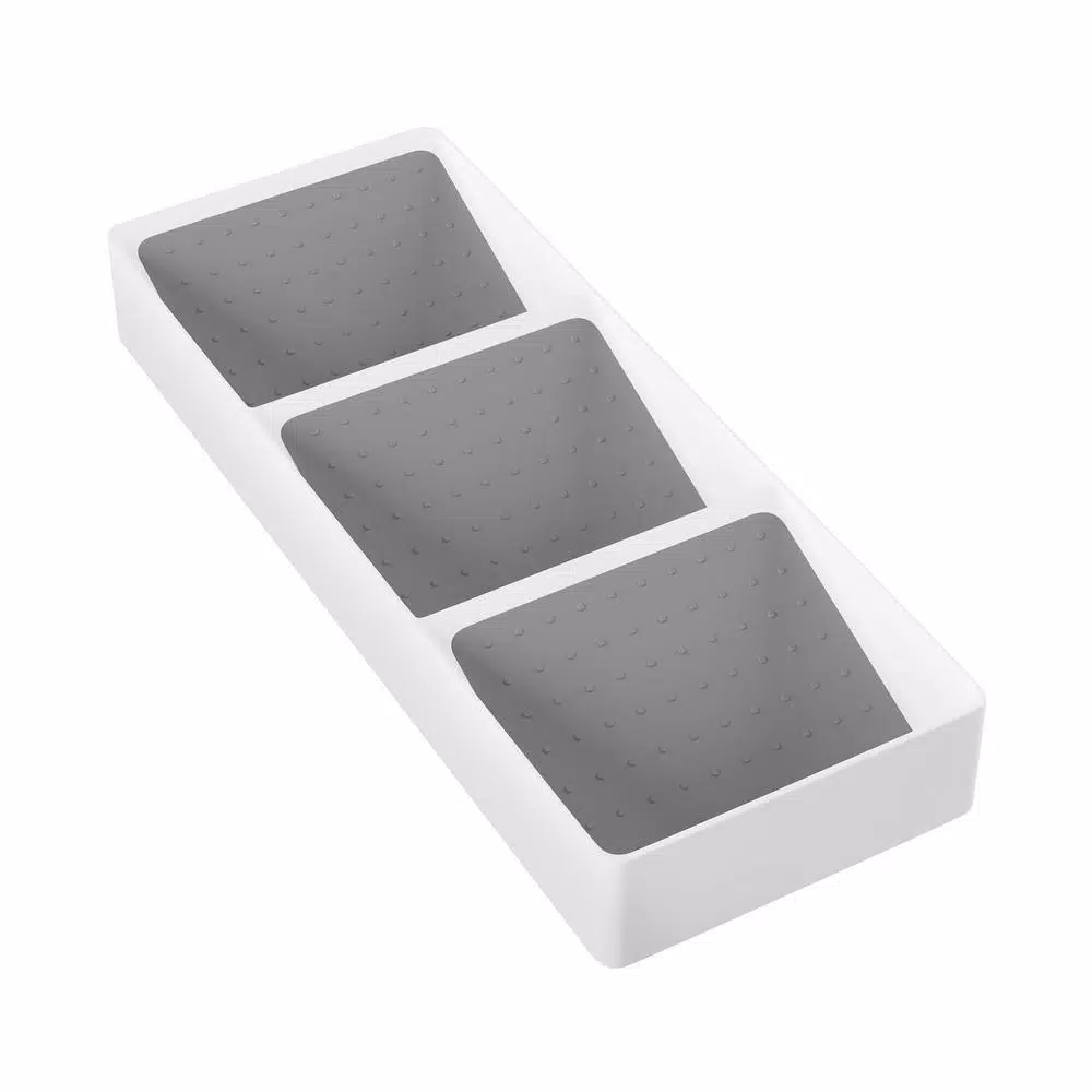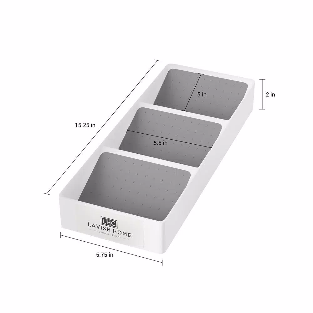 Keep your home neat and organized with the 3-Tiered Nonslip White Drawer Organizer by Lavish Home. This 3-tiered shelf has an angled tray design that easily fits into drawers, freeing up space in small areas and allows you to take inventory at a glance. The organizer is made of polypropylene plastic and features a non-slip rubber liner to keep jars, bottles and other items safely in place. This organizer features a single-piece construction, meaning there is no assembly required and its ready to use straight out of the box. This shelf is also great for use in your office, bathroom or laundry room to keep your home clutter free.