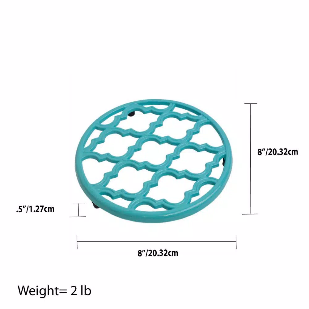 Protect your precious granite countertops and hardwood tables from scratches and heat damage with this round and sturdy trivet. Made of weighted cast iron, It offers exceptional heat retention, resisting high temperatures to up to 400° Fahrenheit. Doubling as a beautiful decor, it also makes an elegant place mat for a hot casserole or any meal you want to add a touch of class and charm.