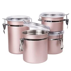 Food Storage Creative Home Rose Gold Stainless Steel Canister, Storage Container With Air Tight Lid And Locking Clamp (Set Of 4)