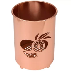 Features a lemon design laser cut motif into the surface. Dimensions: 5 in. x 5 in. x 7-1/2 in. H. Elegant copper finish. Keeps tools neatly stored and within reach. Hand wash recommended.