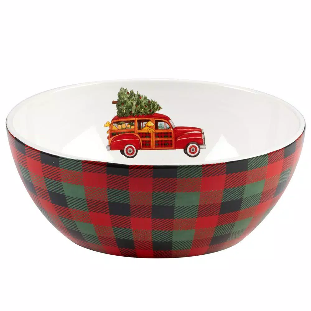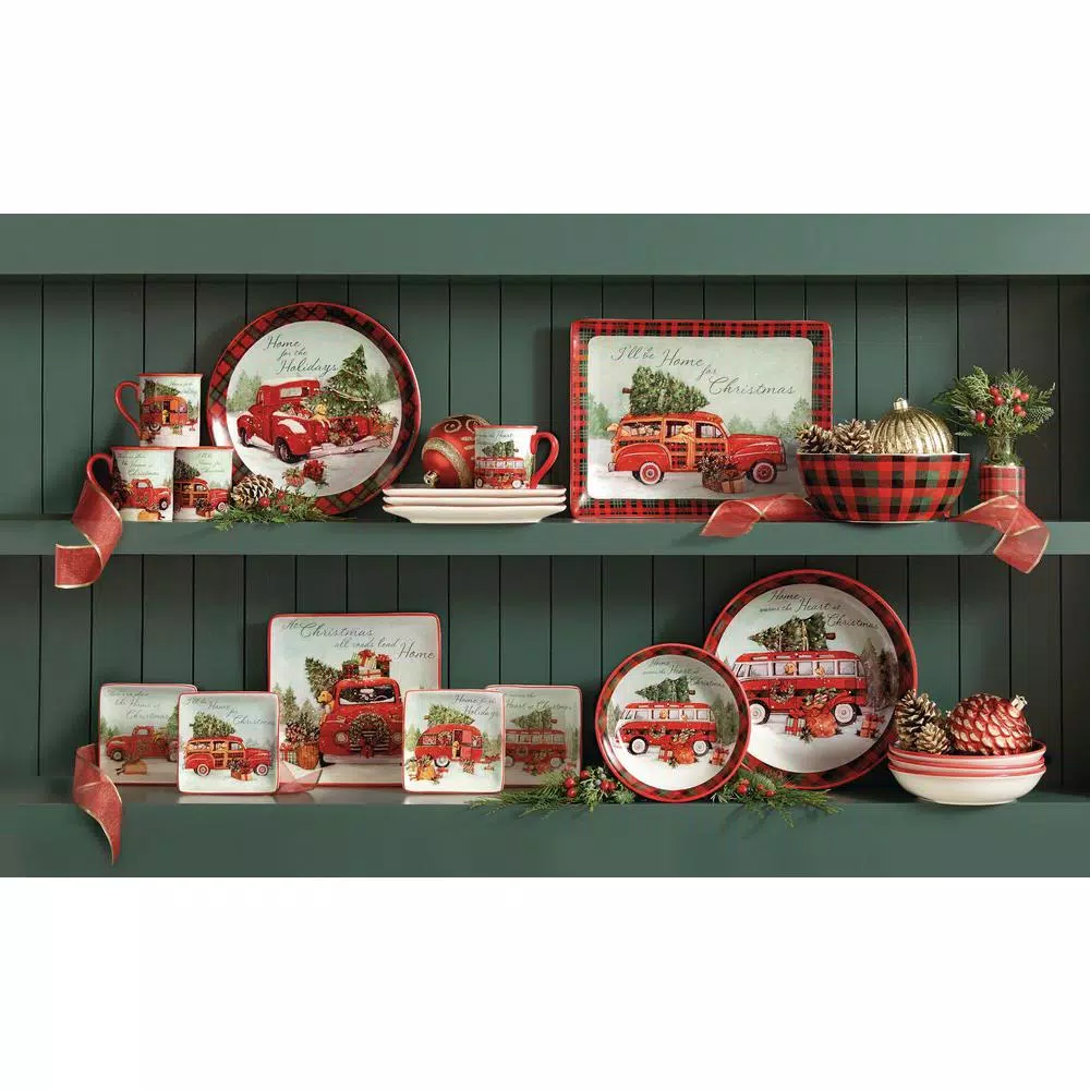 Join the holiday caravan traveling home for Christmas with Certified Internationals ceramic dinnerware and serveware featuring red trucks, woodies, campers and vans. Designed by Susan Winget, the red plaid trim and colorful 3-d red truck accessories make this a delightful addition to your home for the holidays. Set your table with this beautifully designed collection and share the memories.