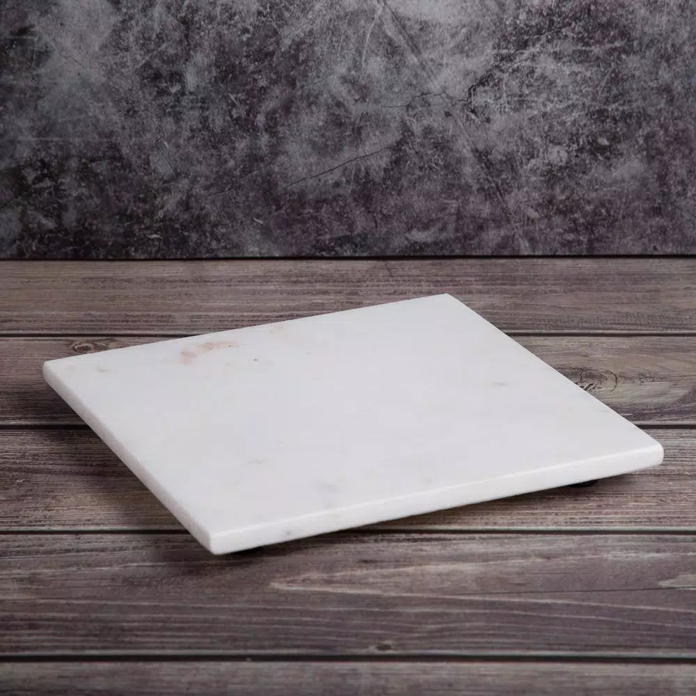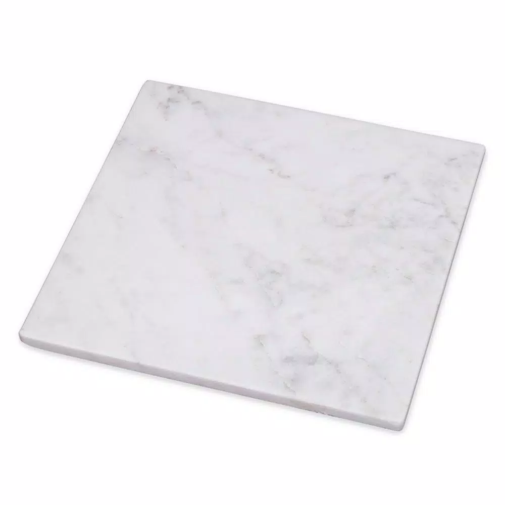 Creative Home creamy white marble trivet has rubber ft. Marble keeps moisture, grease and odors from penetrating, is easy to clean and is non porous. Marble stays cool and is favored by top pastry chefs. Hand crafted and polished from genuine natural marble, last long time. Polished marble surface by hand, any color variation is its own uniqueness. Keeps moisture, grease and odors from penetrating. Durable, heavy weight natural marble keeps round serving board sturdy and increases stability.
