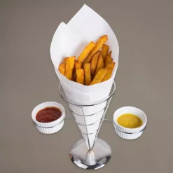 Serveware Creative Home Chrome Iron Wire French Fry Set With Single Cone Holder, 2-Ceramic Ramekins For Dipping Sauce