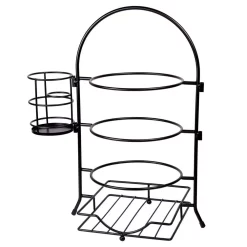 Serveware Creative Home 3-Tier Black Buffet Caddy Serving Rack With 2-Detachable Napkin Flatware Holders