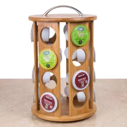 Serveware Creative Home Natural Bamboo Single Serve Revolving Carousel Coffee Pod Holder Organizer