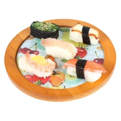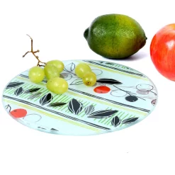 Serveware Creative Home 7.5 In. Round Tempered Glass Trivet Serving Board, Fruit Pattern With Solid Wood Trim