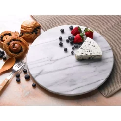 Serveware Creative Home 12 In. Off-White Natural Marble Round Board Cheese Serving Plate, Dessert Cake Service Board
