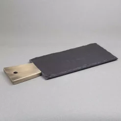 Serveware Creative Home Natural Slate Stone 13 In. X 5 In. X 1/2 In. H Black Cheese Serving Paddle Board With Stainless Steel Copper Trim Handle
