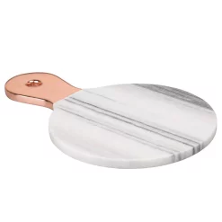 Serveware Creative Home Natural Marble 12-1/8 In. X 8 In. X 1/2 In. H White Cheese Serving Paddle Board With Stainless Steel Copper Trim Handle