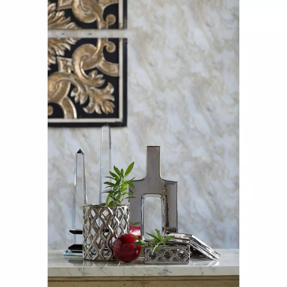 With its distinctive shape and lustrous matte finish, the Ceramic Keyhole Vase adds a warm metallic shine and modern style to any space. Add this chic vase to a living room mantle, entryway table or kitchen counter. Fill with a single flower for a soft yet modern look or display alone to highlight its sharp angles, gleaming finish and peephole detailing.