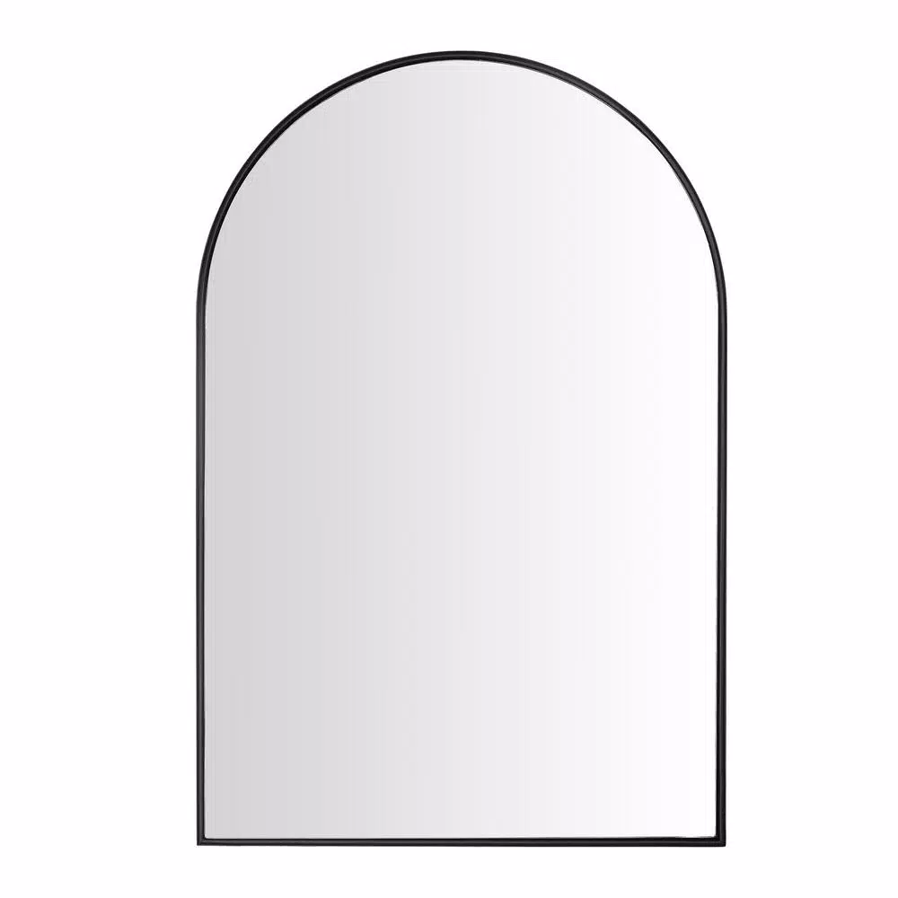 The Medium Arched Black Classic Accent Mirror from Home Decorators Collection features a dome-shaped design that complements a classic style of decor. Its composite frame is black to match the color scheme in any room of the house. With pre-installed D-rings on the back, this elegant mirror can be hung up securely without much hassle. Wipe the reflective surface with a soft, dry cloth to keep it clean.