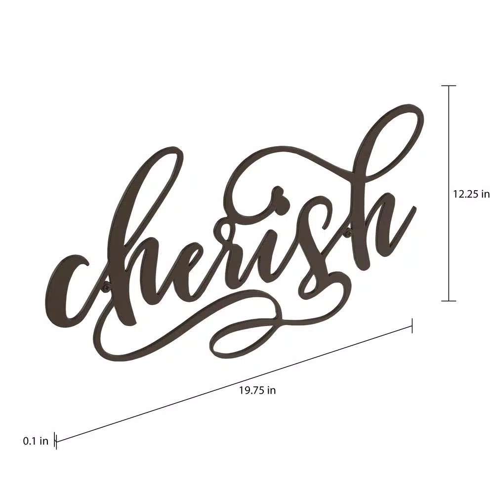 The Metal Cutout Cherish Sign by Lavish Home is a beautiful addition to any home decor. With an attractive distressed dark brown finish, this inspiring word art will complement any style of interior design, from modern rustic to vintage farmhouse chic. Perfect for home or office, this versatile and uplifting piece is a great touch for your living room, kitchen, bedroom, bath, or front entryway.