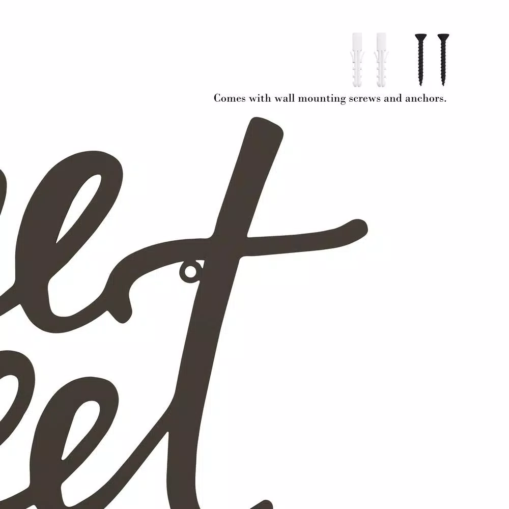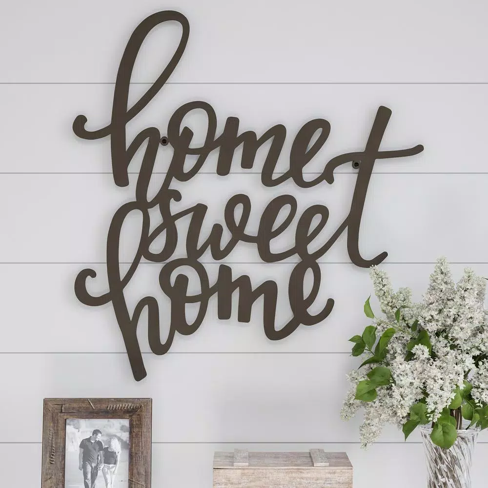 The Metal Cutout “Home Sweet Home” Sign by Lavish Home is a beautiful addition to any home decor. With an attractive distressed dark brown finish, this inspiring word art will complement any style of interior design, from modern rustic to vintage farmhouse chic. Perfect for home or office, this versatile and uplifting piece is a great touch for your living room, kitchen, bedroom, bath or front entryway. Its soft looping cursive silhouette pairs perfectly with the warm sentiment to welcome guests, friends and family.